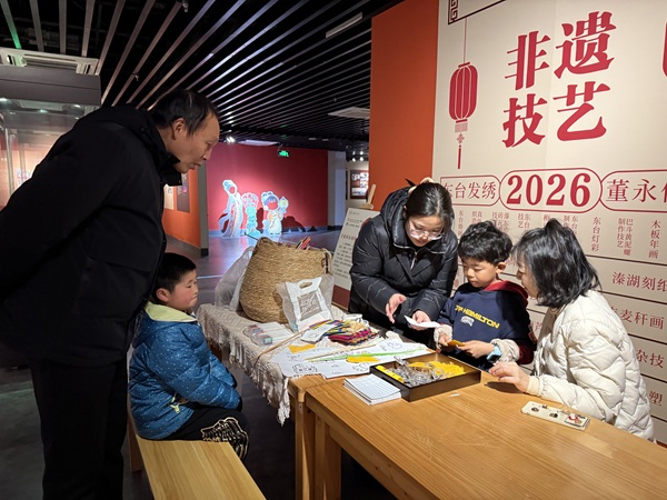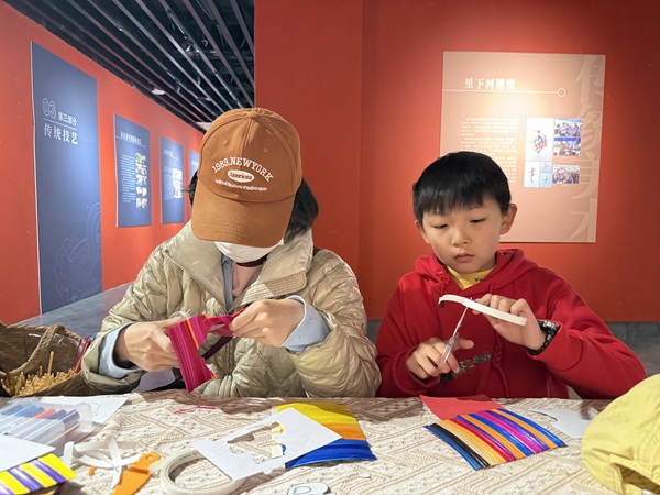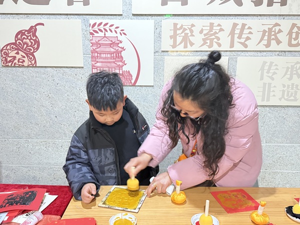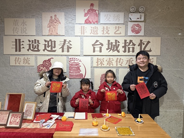 依托“非遗迎春 台城拾忆——东台市非物质文化遗产展”,“麦秆拼春 指尖纳吉”与“吉语烙画 拓印纳福”两大主题社教活动同步火热开展。现场观众在打卡参观展览之余,纷纷化身“手艺人”,或在麦秆拼图中勾勒春韵,或在拓印体验中纳福迎祥,沉浸式感受东台非遗的独特魅力。