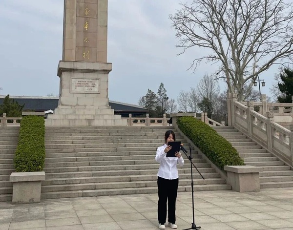 大学生志愿者代表深情朗诵“冰雕连”主题诗歌,用铿锵有力的声音致敬先烈;在祭扫仪式上,大家为烈士墓擦拭墓碑、敬献鲜花,以深深鞠躬表达对革命先烈的无限缅怀与崇高敬意。