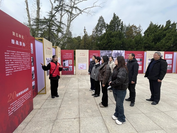 在专题展板前,大学生志愿者带领大家驻足凝望,细致还原“冰雕连”战士们在零下40℃的极寒环境里,坚守阵地、直至壮烈牺牲的英雄壮举。一张张老照片、一段段文字记录,生动诉说着东台籍战士与战友们并肩作战、保家卫国的峥嵘岁月,让在场观众深受震撼,不少人红了眼眶。